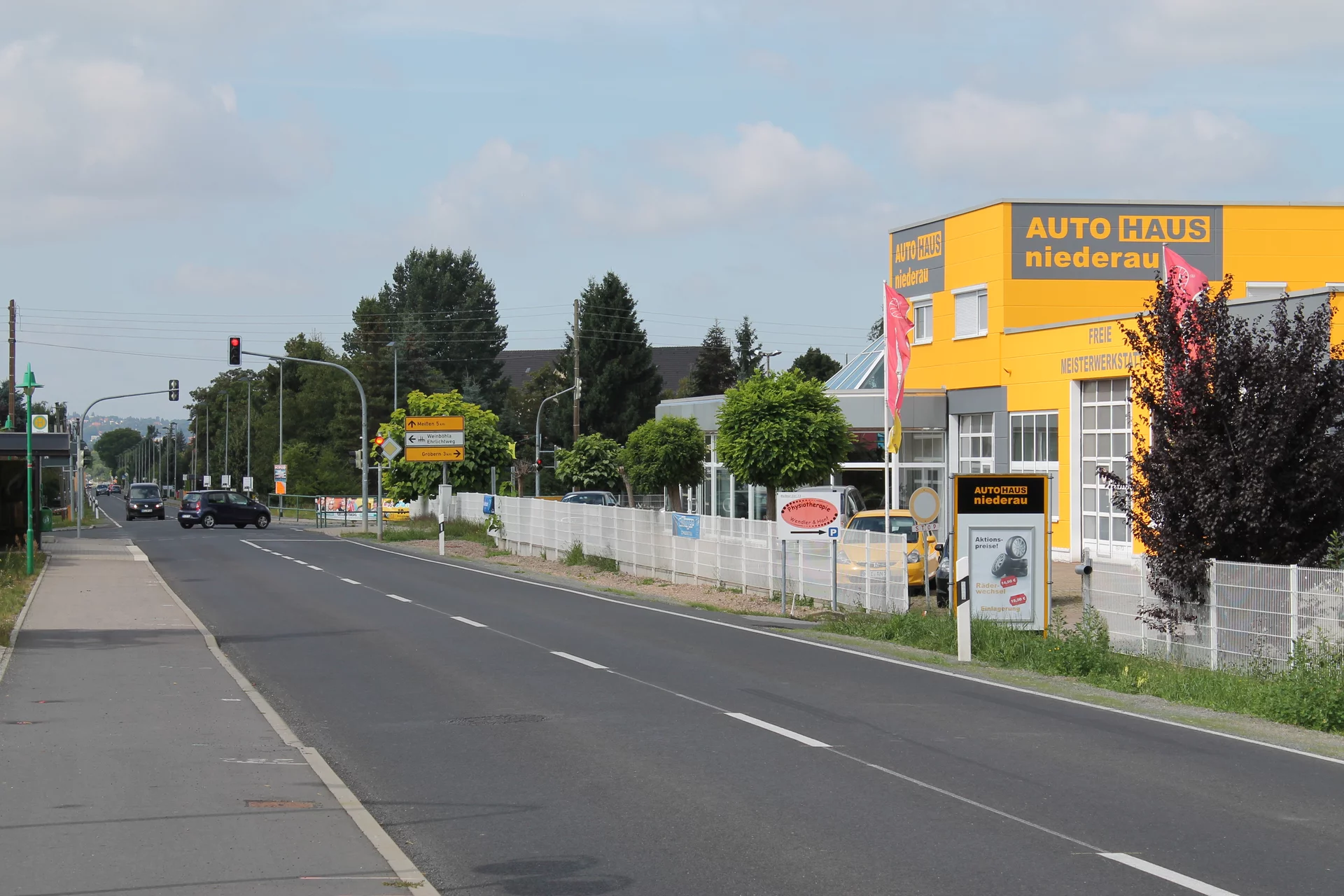 (Kreuzungsbereich / Durchgangsstraßen in Richtung Weinböhla, Meißen und Gröbern).